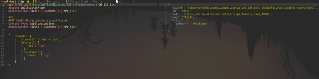 Here we have two requests, a GET request, to get a Jira issue and a POST Request to create a Jira issue. The triple hashtags ###
